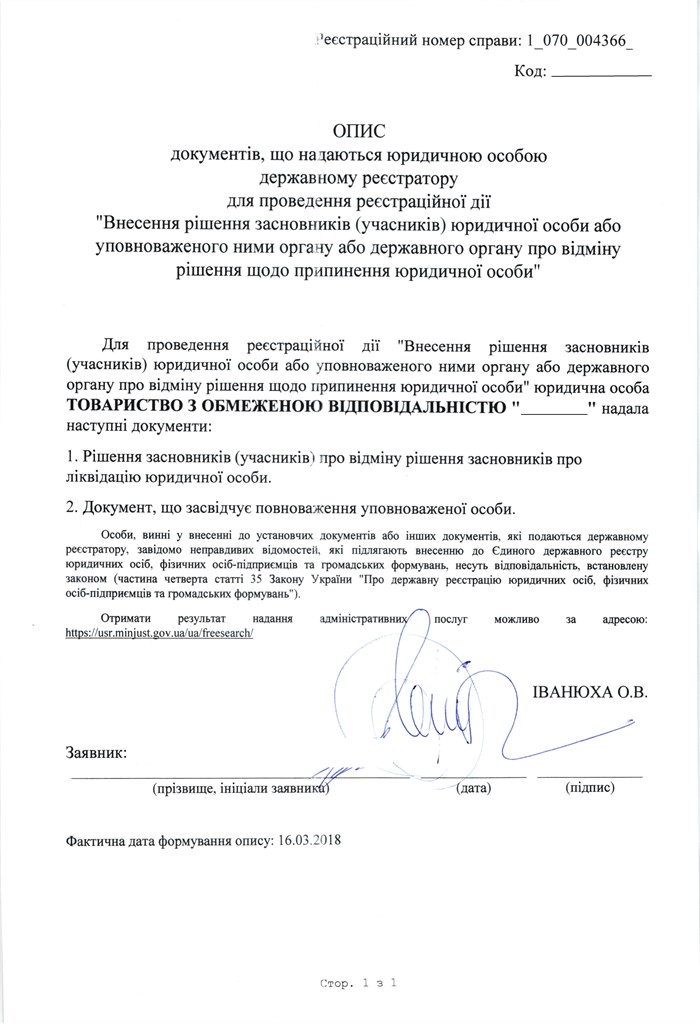 - power of attorney for employees of our firm which includes power to perform all actions related to closure of LLC in Ukraine;