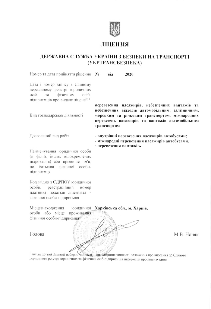 Our experience helps us obtain not only licenses for cargo transportation or transportation of dangerous goods, but also passenger licenses, including international ones.