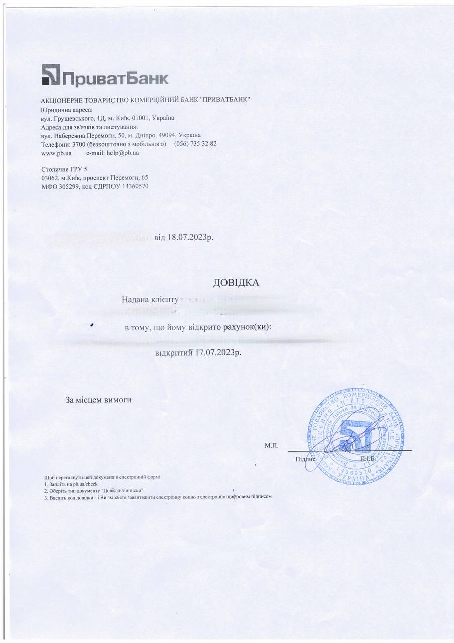 - Help you resolve further legal issues for which an account was opened in Ukraine;